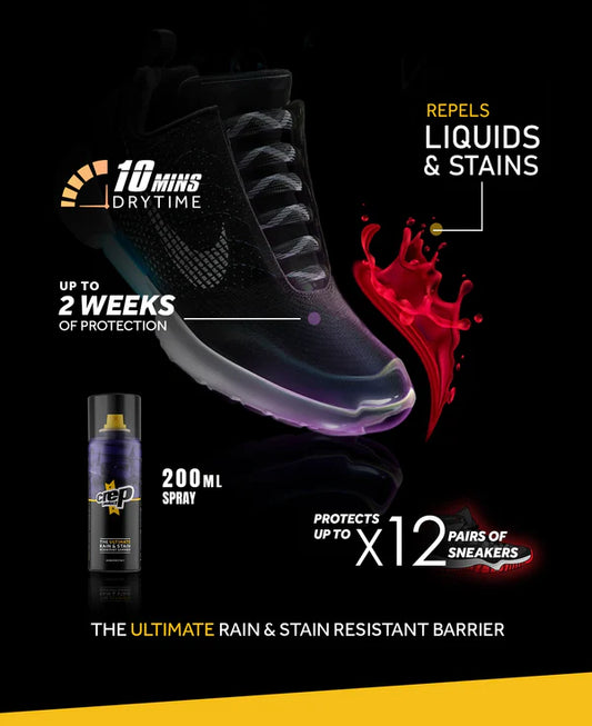 We apply a protective barrier to help guard your sneakers against light rain, spills, and everyday grime. Ideal for keeping white pairs and suede safe longer.