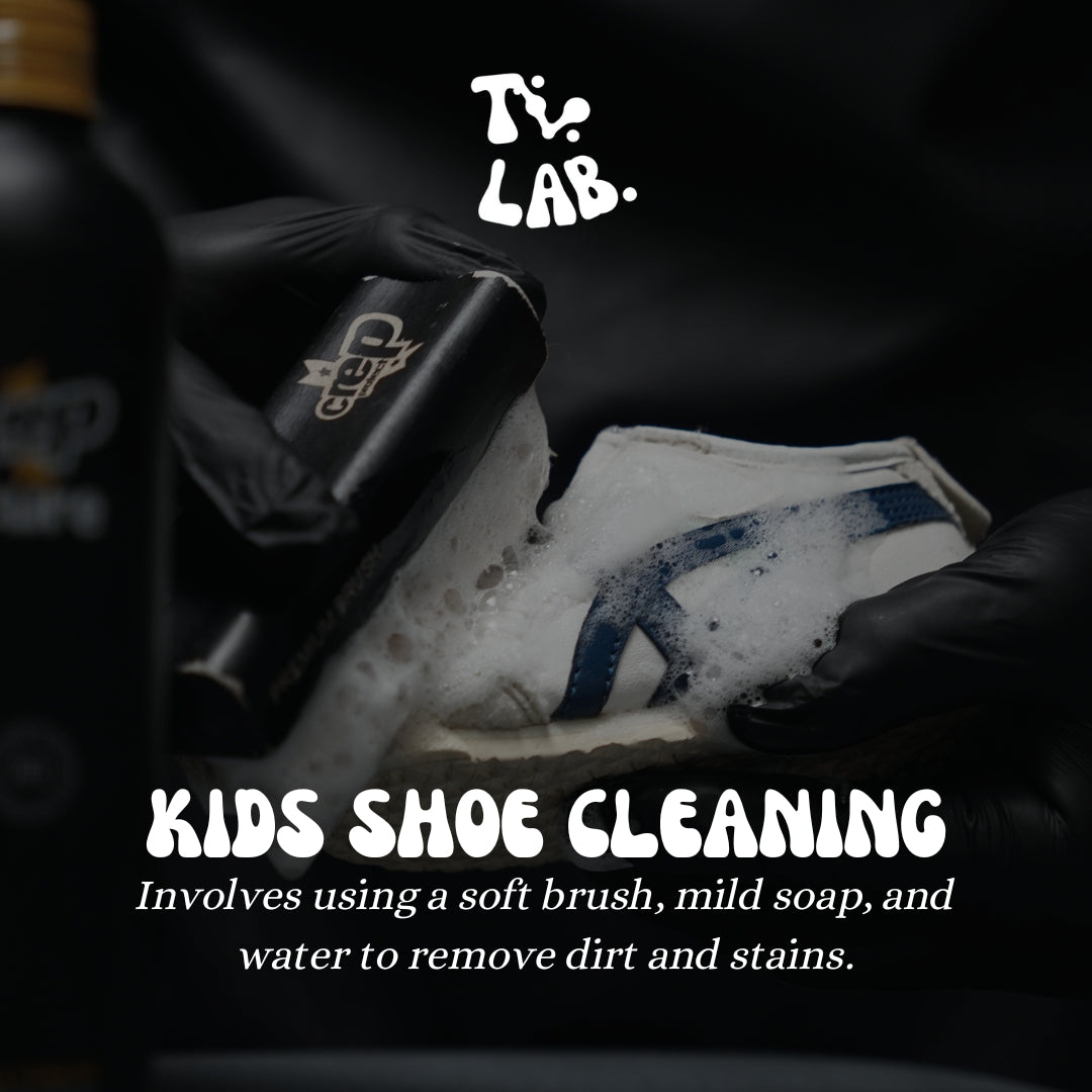 A gentle yet effective cleaning process using a soft brush, mild soap, and water to remove dirt and stains. Designed to keep your little one's shoes clean, fresh, and safe for tiny feet!