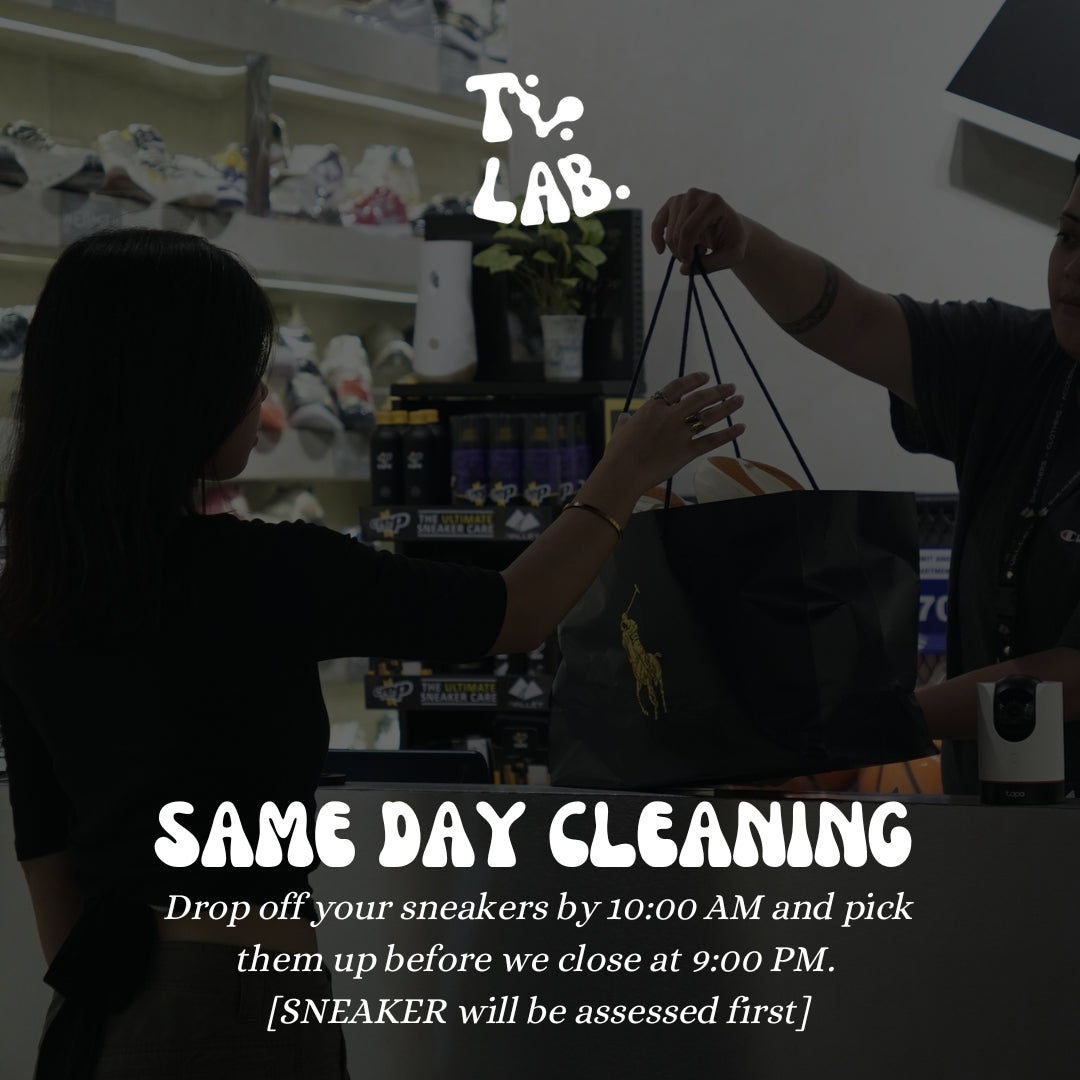Drop off your sneakers by 10:00 AM and pick them up before we close at 9:00 PM.