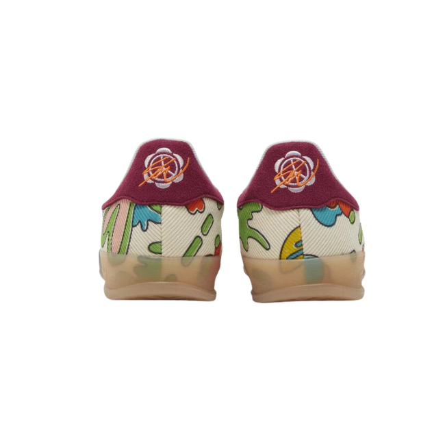 The Sean Wotherspoon x adidas Gazelle Indoor ‘Kaleidoscopic Lens’ brings the Round Two co-founder’s whimsical twist to a classic shoe. This stylish low-top features an off-white textile upper adorned with vibrant illustrations inspired by ‘70s graphic art. The iconic three-stripes from adidas come in Shadow Navy suede, and Sean Wotherspoon’s own logo graces the magenta suede heel tab. The look is completed with a sleek, low-profile cupsole made from translucent rubber.