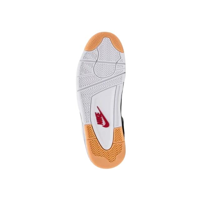 The Nike SB x Air Jordan 4 Retro SP 'Navy' gives Michael Jordan's fourth signature shoe a skate-ready transformation. The classic silhouette features a white leather upper with a grey suede overlay on the forefoot and quarter panel netting. A crimson Jumpman is displayed on the woven tongue tag, while embossed Nike SB branding is found on the navy heel tab. Additional navy details are present on the molded eyelets and polyurethane midsole, which replaces the encapsulated Air-sole unit in the forefoot but retains the visible Air bag in the heel. The herringbone traction outsole incorporates gum rubber in high-wear areas.